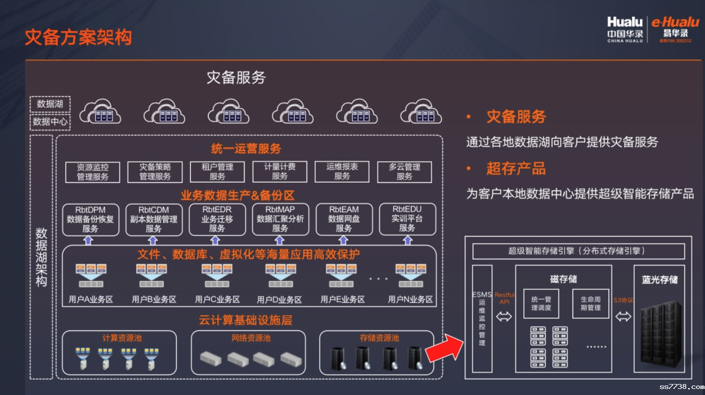 超级智能存储系统:利用超级智能存储系统做底层支撑,融合NVMe、SSD、HDD、磁带、蓝光等存储介质的优势,提供数据全生命周期管理,保证数据安全的同时节约用户成本