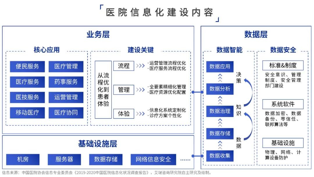健康医疗大数据体系建设发展至今,国家从战略规划、技术能力及应用与管理三个层面积极落实推进医疗大数据发展。“健康医疗数据平台”“智慧医疗服务”“互联网+健康医疗服务”“健康医疗数据库”,医疗信息化建设从底层基础设施、智能化应用到数据采集、存储、分析层面都卓有成效。