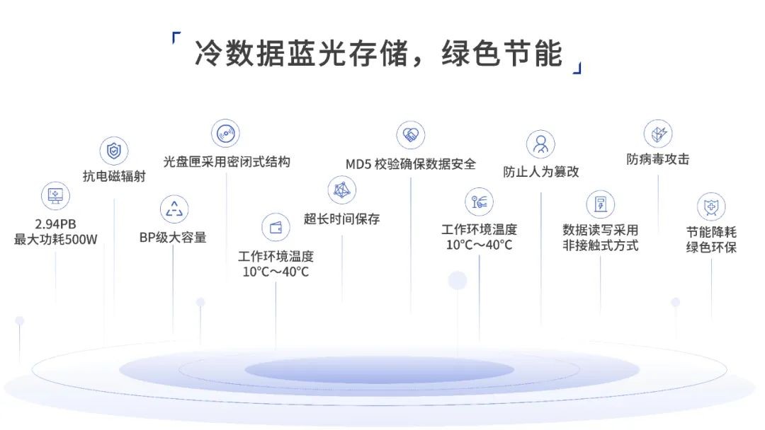 为响应国家“绿色低碳发展”战略,健康医疗数据库、数据中心、研究院等平台建设的同时,需要考虑基础设施节能减排问题。伟德app手机下载官网安卓版蓝光光盘库使用功耗低,无需额外空调设备降温,数据长期存储无需迁移,介质更换次数少等特点,有效降低医疗数据长期存储成本,同时达到节水、节地、节碳,绿色节能效果。