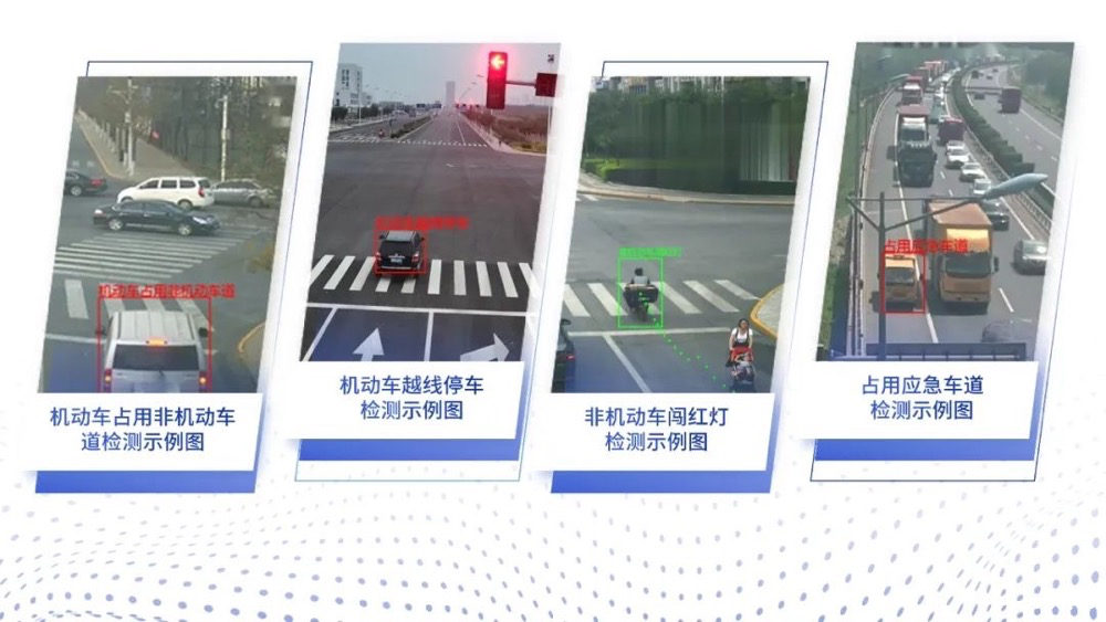 全面覆盖:对视频图像进行智能分析,支持检测高速公路、城市道路场景下的机动车、非机动车、外卖车、行人等多种交通元素,实现了机动车违反禁止标线、机动车占用非机动车道、机动车逆向行驶、机动车不按导向线行驶、机动车连续变更车道等30种违法违规事件检测,对目前影响交通安全的主要违法违规现象做了全面覆盖。