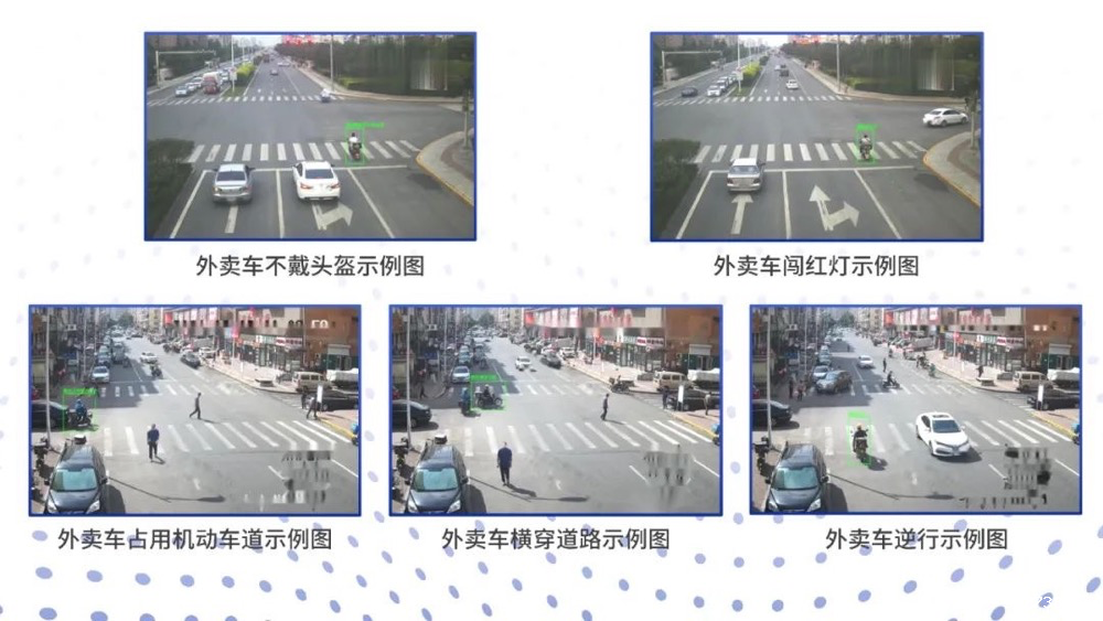 外卖车违法事件算法效果示例(经公安一所检验,算法识别准确率均>95%)