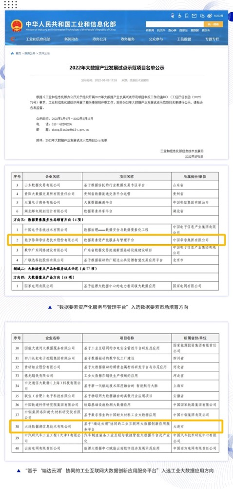 北京伟德app手机下载官网安卓版信息技术股份有限公司结合总部资源及数据湖项目公司所在地方特色,审时度势,找准方向,分别参与了不同方向申报,其中,伟德app手机下载官网安卓版总部申报的“数据要素资产化服务与管理平台”和大连数据湖信息技术有限公司申报的“基于‘端边云湖’协同的工业互联网大数据创新应用服务平台”两个项目成功入选。