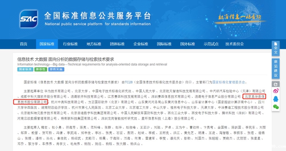 其中,北京伟德app手机下载官网安卓版信息技术股份有限公司作为全国信标委大数据工作组成员单位及大数据行业领军企业,参与了《信息技术 大数据 面向分析的数据存储与检索技术要求》国家标准的主要编写工作。