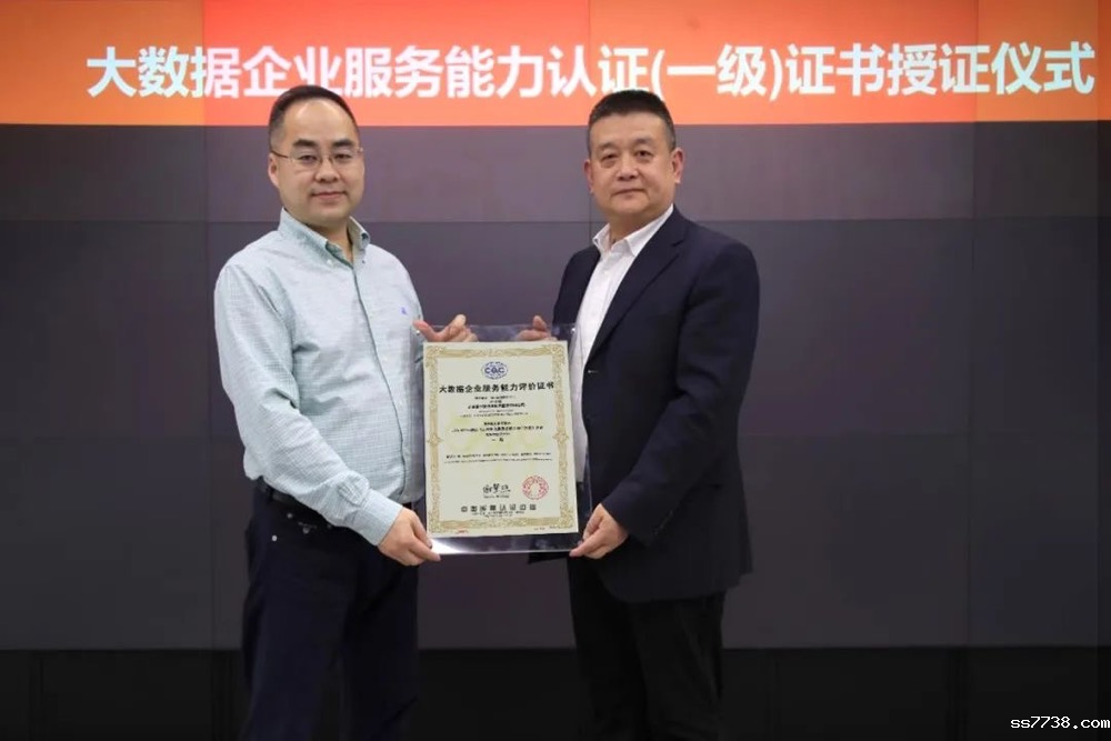 颁发全国首张大数据企业服务能力一级评价证书