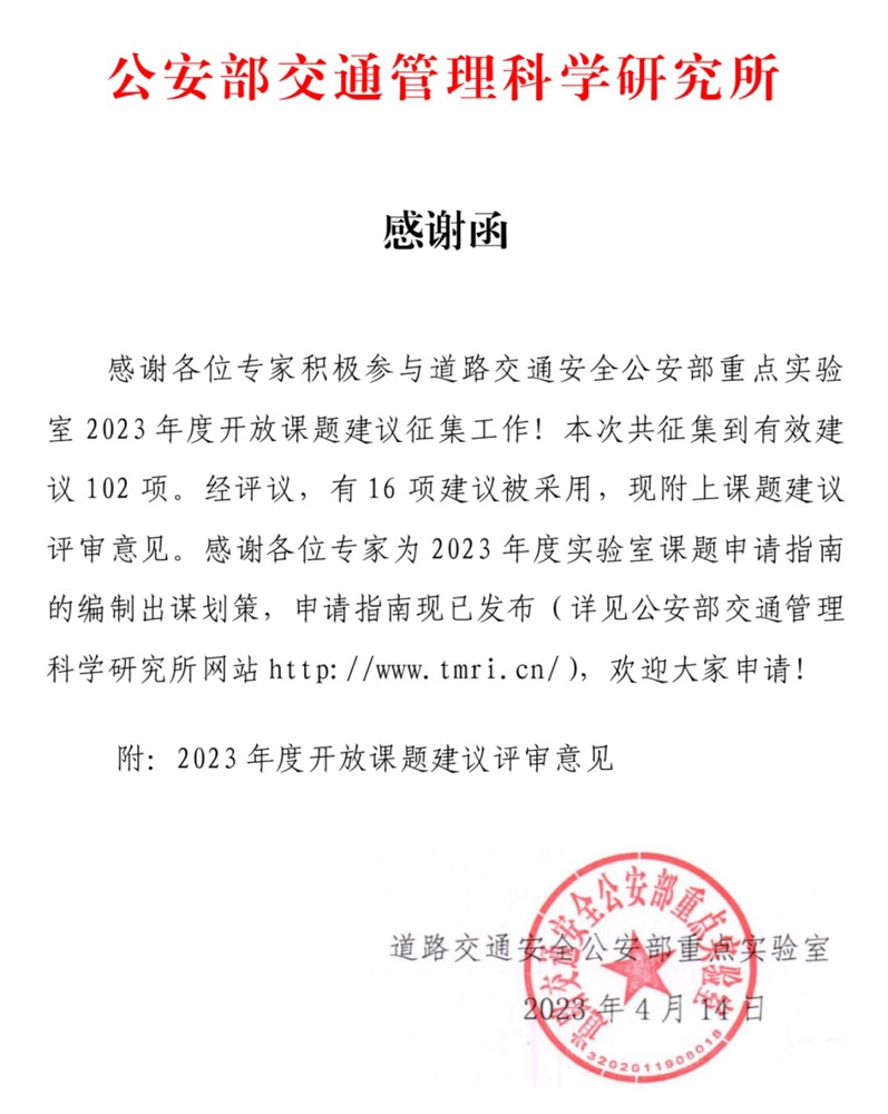 今年2月,道路交通安全公安部重点实验室组织征集2023年度开放课题,截止到4月,本次共征集到有效建议102项。经评议,有16项建议被采用,其中北京伟德app手机下载官网安卓版信息技术股份有限公司提出《农村公路安全风险评估技术研究》课题被选用。