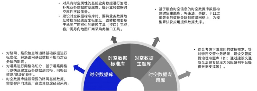 时空数据时空属性治理,提升数据质量;建立时空数据到路网的关联关系、支撑业务数据上图需求;建立时空主题库支撑道路风险研判需求。