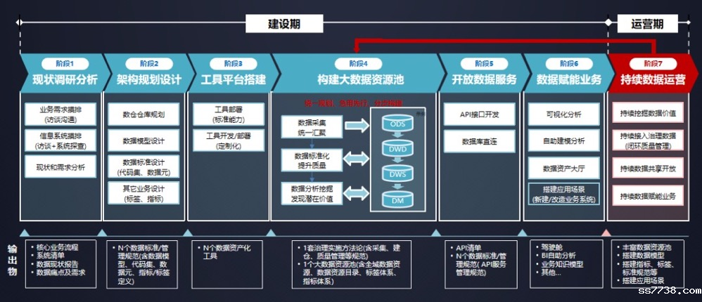 资源化的第一步就是持续规模化数据收储治理,即:持续采集接入收纳规模化的源数据,借助多维数据融合互补、交叉印证,完成数据标准化归集治理,良好的数据质量是数据价值评估的前提;第二步就是聚焦场景、碰撞挖掘、构建体系化的数据产品;第三步是体系内持续提供分级分类数据服务,就是在支撑业务平台效能升级的同时,提供有序的数据共享开放服务。数据资源化是当前交通数据资产化最主要的发展阶段。