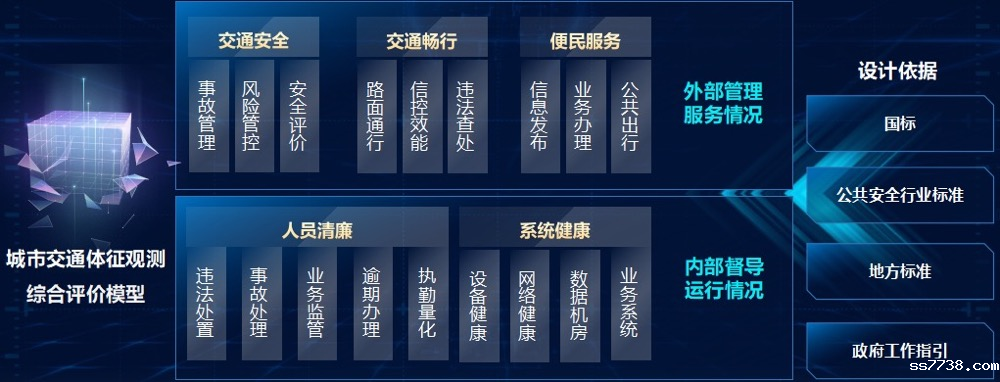 运用“城市交通体征观测”综合性评价模型,从交通安全、交通畅行、便民服务、人员督导、系统健康方面全面刻画城市交通运行状况,对城市进行全方位立体化运行健康评价分析。