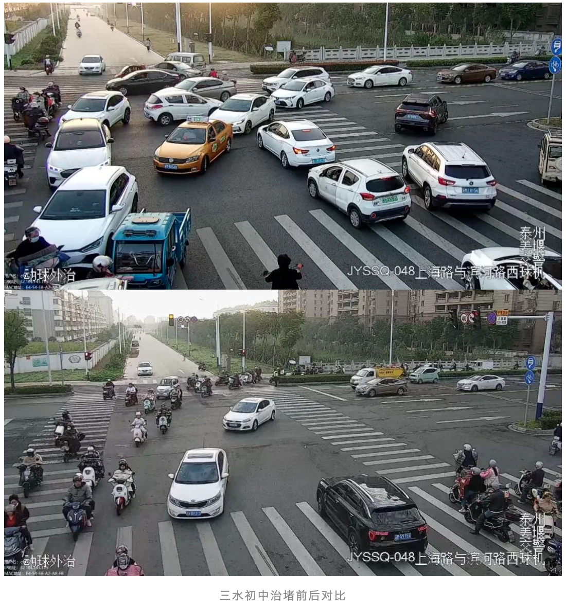 三水初中门前道路治堵方案实施以来,学校周边道路停车难、秩序乱、通行堵的问题已经得到了明显改善,道路通行效率明显提升,接送高峰时长明显缩短。此举措得到了学校领导、学生家长高度好评。