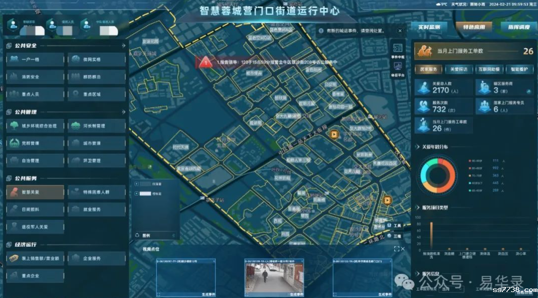 在全市智慧蓉城运行管理平台“王”字形架构基础上,将“微网实格”治理要素纳入区级、街道级城运体系建设,在建立街道级数据底座的前提下,再次整合报表通采集数据以及民政局提供的数据,形成了营门口街道的关爱人群基础数据库,建立“以核代采”的工作机制;同时将区级城运事件枢纽、蓉政通、地理信息库、视频融合平台、物联网监管平台等多项能力整合赋能街道平台,赋能街道打造智慧关爱场景;采用“1+N”的建设模式,即利用全套区级资源,按照街道的实际需求,打造出符合街道特色的多种业务场景