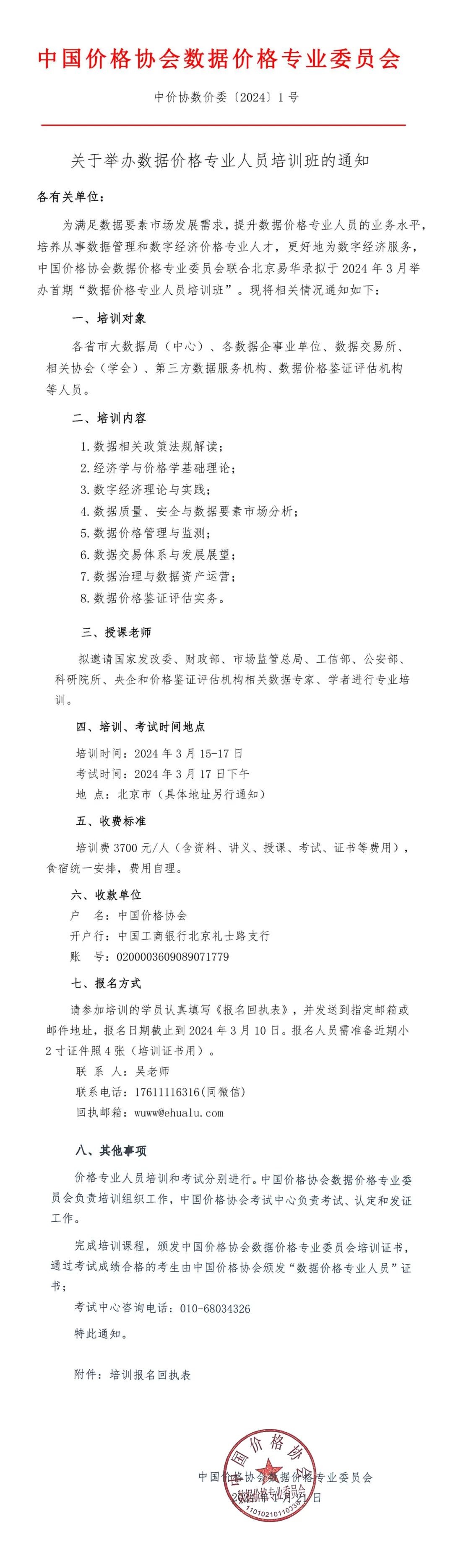 为满足数据要素市场发展需求,提升数据价格专业人员的业务水平,培养从事数据管理和数字经济价格专业人才,更好地为数字经济服务,中国价格协会数据价格专业委员会联合伟德app手机下载官网安卓版拟于3月举办首期“数据价格专业人员培训班”。