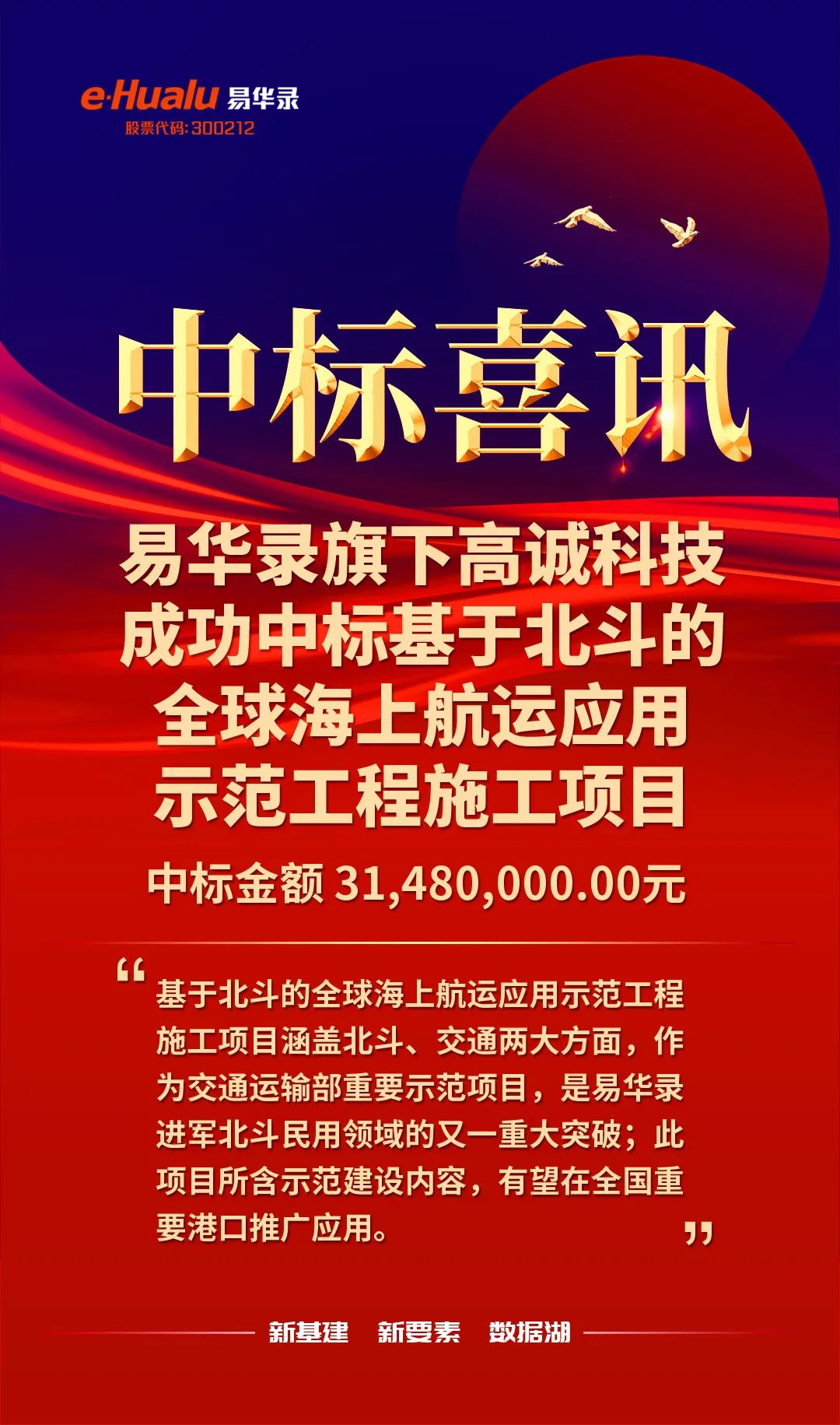 喜讯 | 伟德app手机下载官网安卓版旗下子公司高诚科技成功中标“基于北斗的全球海上航运应用示范工程施工项目”