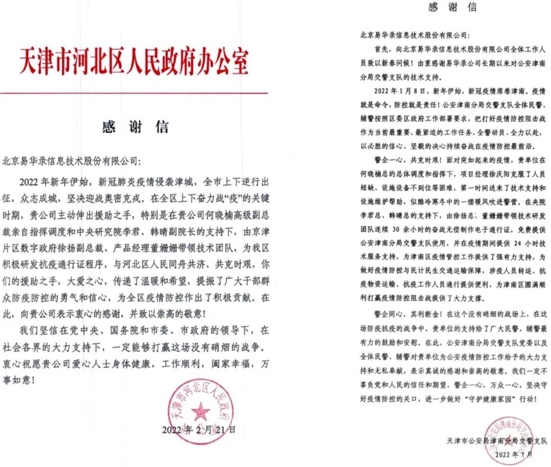 众志成城 同心战疫 | 伟德app手机下载官网安卓版收到天津市河北区和津南区发来的感谢信