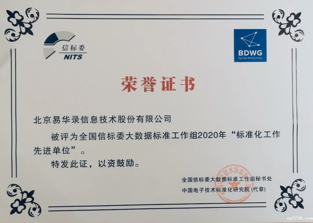 伟德app手机下载官网安卓版荣获“2020年全国信标委大数据标准工作组先进单位”称号
